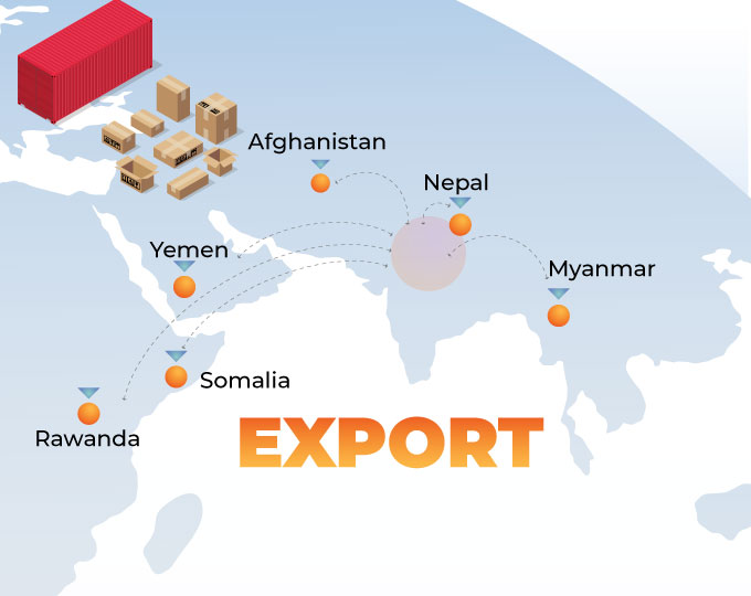 At Salutemed Healthcare, we take pride in extending our commitment to quality healthcare beyond the borders of India. Our products are not only trusted locally but are also making a significant impact internationally. We are actively exporting to several neighbouring and developing countries, including Yemen, Nepal, Myanmar, Afghanistan, Rwanda, Somalia, and others.